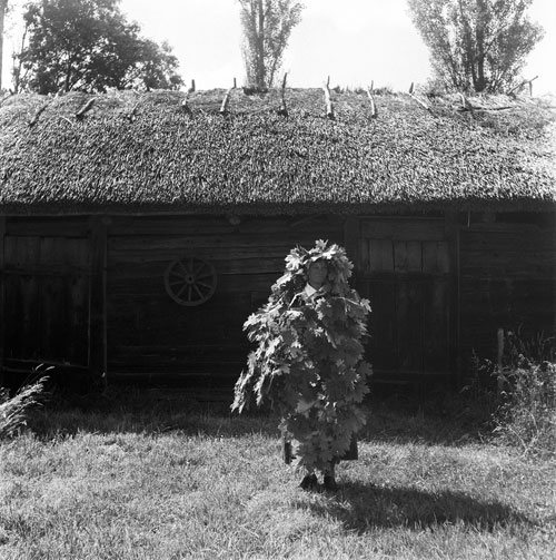 A woman – dressed as a tree - prepares to set take part in Belarusian “Kusta”. It is a tradition that involves people walking around a village singing songs.