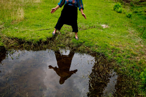 | Seventy nine-year-old Marije P. is out with her cattle in Bardhaj. She expresses grief that her niece Dorina, who is in 8th grade schooling, is unlikely to get married because of her forced confinement. |