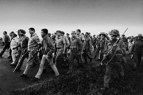| | A very famous iconic picture of its time. Only the defeated Pakistani General seems grim while the others in stark contrast seem victorious: "...with the guns silenced, the Generals came together to talk about the terms of peace. The Indian General was cool, confident and gracious. The defeated Pakistani clenched his jaw..." - Kishor Parekh, Bangladesh War 1971. |